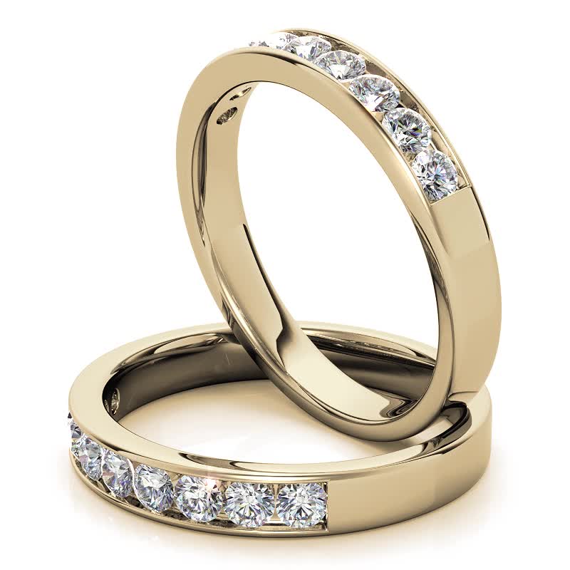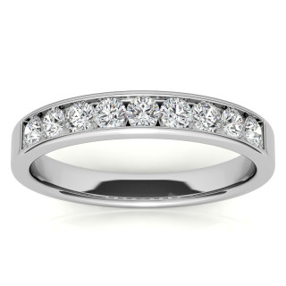This beautiful channel set anniversary ring features nine 2.5mm (0.06ct each) round brilliant lab grown diamonds for a total of 0.54 carat, set in 14k gold, 18k gold or platinum.
