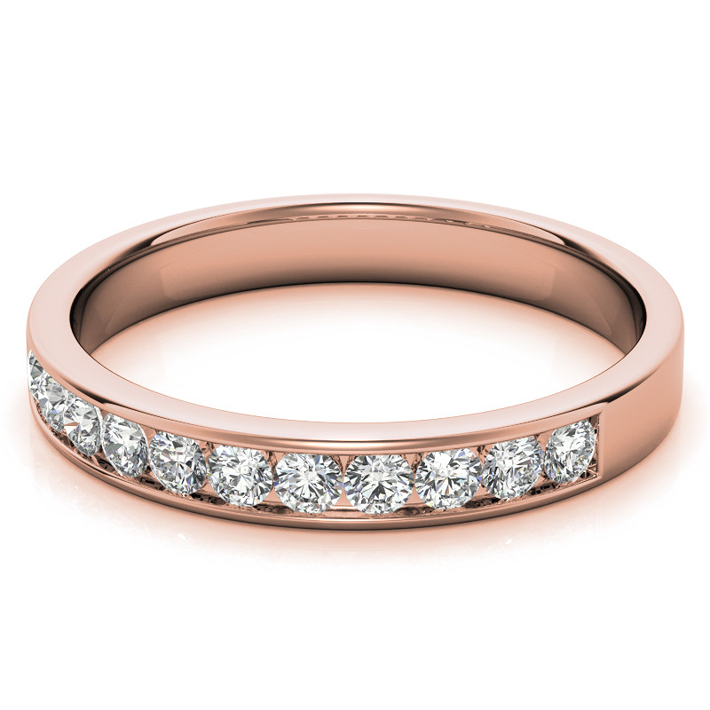 This beautiful channel set anniversary ring features eleven 2mm (0.03ct each) round brilliant lab grown diamonds for a total of 0.33 carat, set in 14k gold, 18k gold or platinum.
