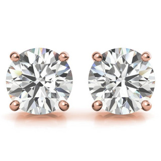 #ear023-rosegold 4-Prong Low Basket Round H&A Lab Grown Diamond Stud Earrings