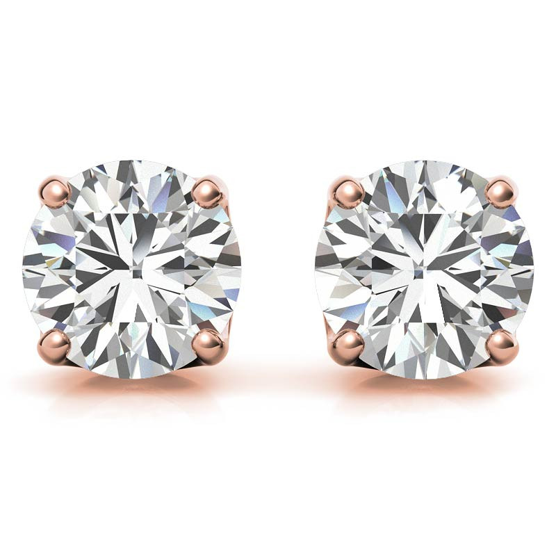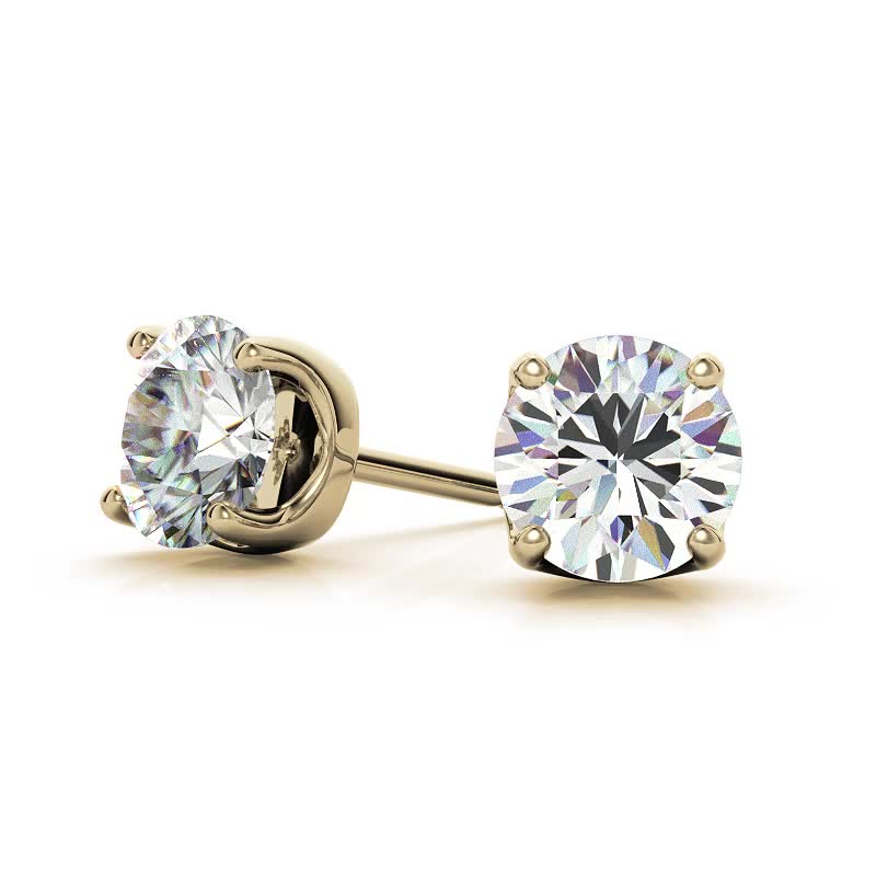 #ear063 Crown 4-Prong Round Lab Grown Diamond Stud Earrings