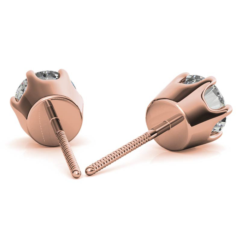 These beautiful round lab grown diamond stud earrings feature a classic 6-prong crown design.