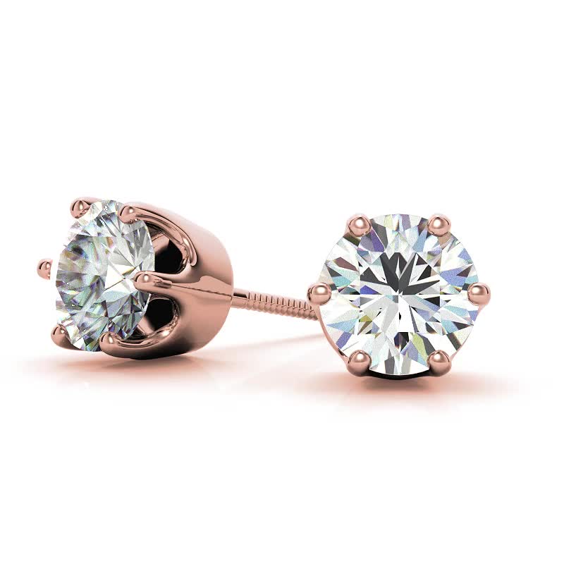 #ear069 Crown 6-Prong Round Lab Grown Diamond Stud Earrings