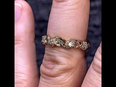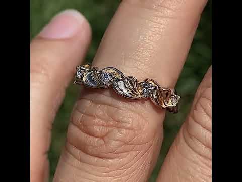 This beautiful eternity ring features a unique floral style design with 1/2ct of round brilliant lab grown diamond stones, set in 14k gold.