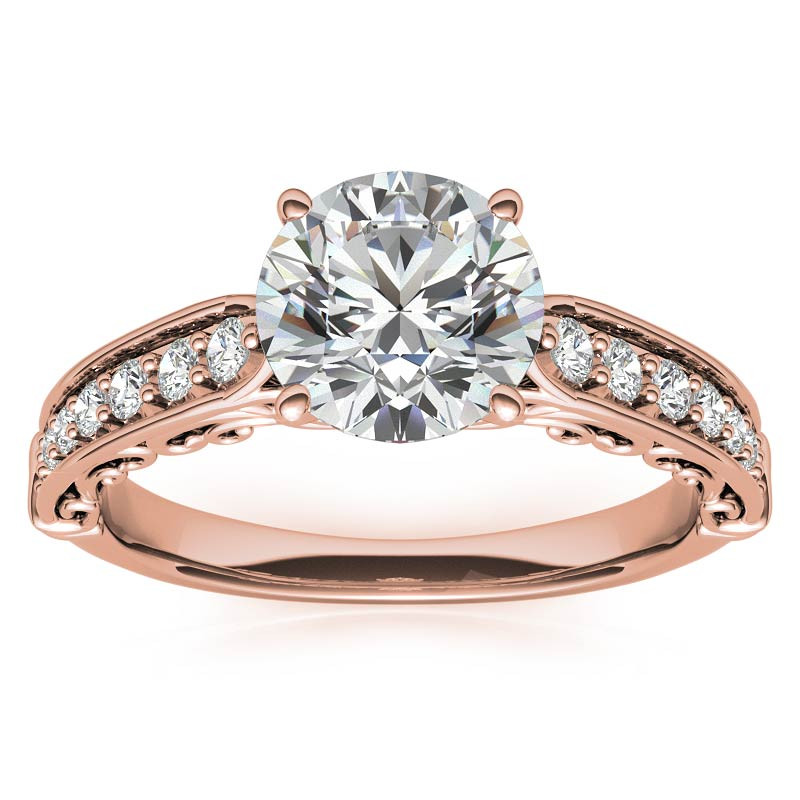Featuring Scroll, Antique, Etched and Side Stones from our Engagement Rings collection. Model #eng023 is available in 10 brilliant center stone options, 2 fine sidestone options, and your choice of 6 eco-friendly precious metals.