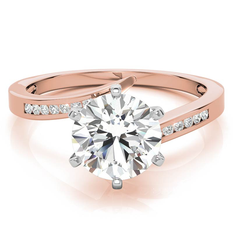 This beautiful lab grown diamond engagement ring features a modern bypass style design with 0.11ct of round brilliant lab grown diamond channel set side stones, in 14k gold, 18k gold or platinum.