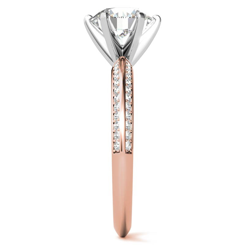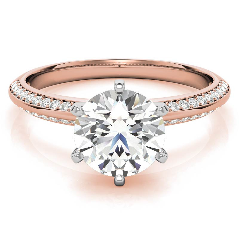 This beautiful lab grown diamond engagement ring features a petite knife-edge design with 0.24ct of round brilliant lab grown diamond side stones, set in 14k gold, 18k gold or platinum.