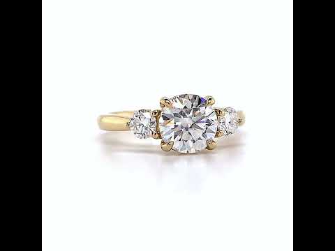 If a 2ct or 1.5ct center stone is chosen, the two side stones are 0.5ct each. If a 1.25ct is selected, the two side stones are 0.33ct each. If a 1ct or 0.75ct center stone is selected, the two side stones are 0.25ct each. If a 0.50ct center stone is selected, the two side stones are 0.15ct each.