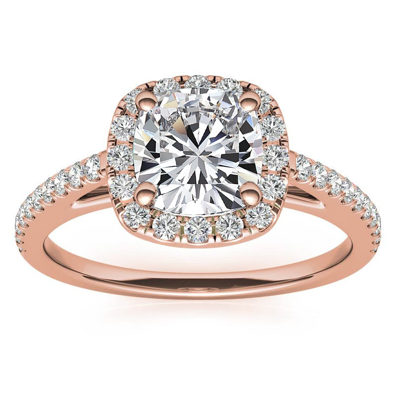 Experience the timeless elegance of our exquisite lab grown diamond engagement ring, expertly designed in a simple, classic halo style. This captivating ring features a stunning cushion cut lab grown diamond center stone, accentuated by 0.40 carats of round brilliant lab grown diamond side stones, expertly set in your choice of luxurious 14k gold, 18k gold, or platinum.