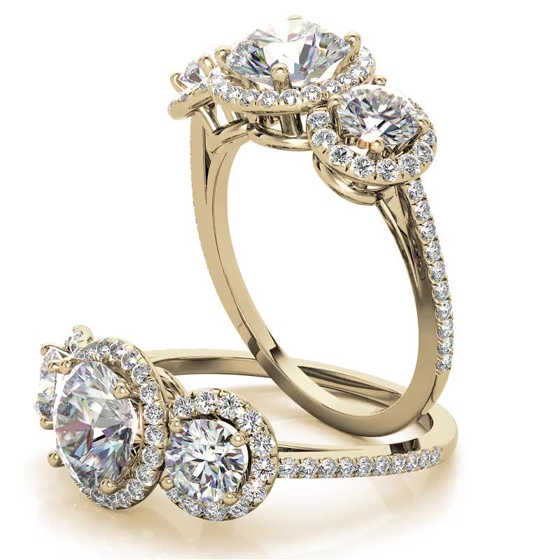 #eng207 Round Three-Stone Halo Lab Grown Diamond Engagement Ring