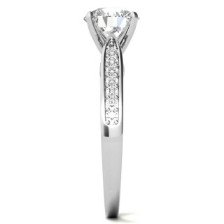 This beautiful engagement ring features an antique sculpted design with 0.14ct of round brilliant lab grown diamond side stones, and is available in 14k gold, 18k gold or platinum.