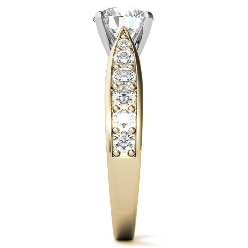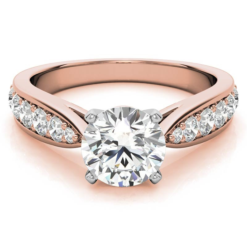 This beautiful engagement ring setting features a tapered cathedral design with round brilliant lab grown diamond side stones (0.44ct), set in 14k gold, 18k gold or platinum.