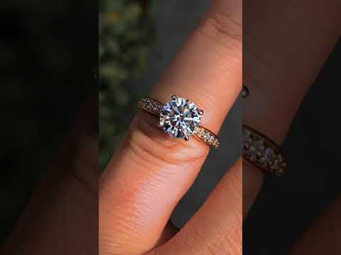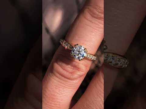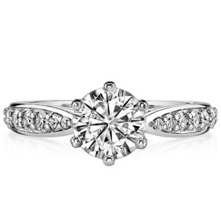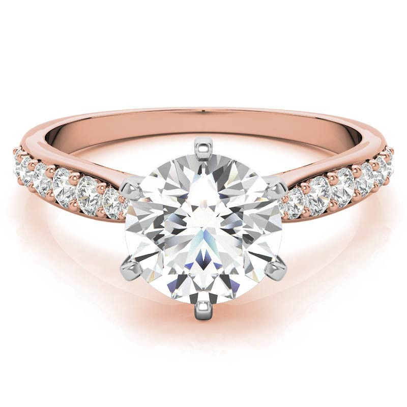 This beautiful engagement ring setting features a tapered cathedral design with round brilliant lab grown diamond side stones (0.28ct), set in 14k gold, 18k gold or platinum.