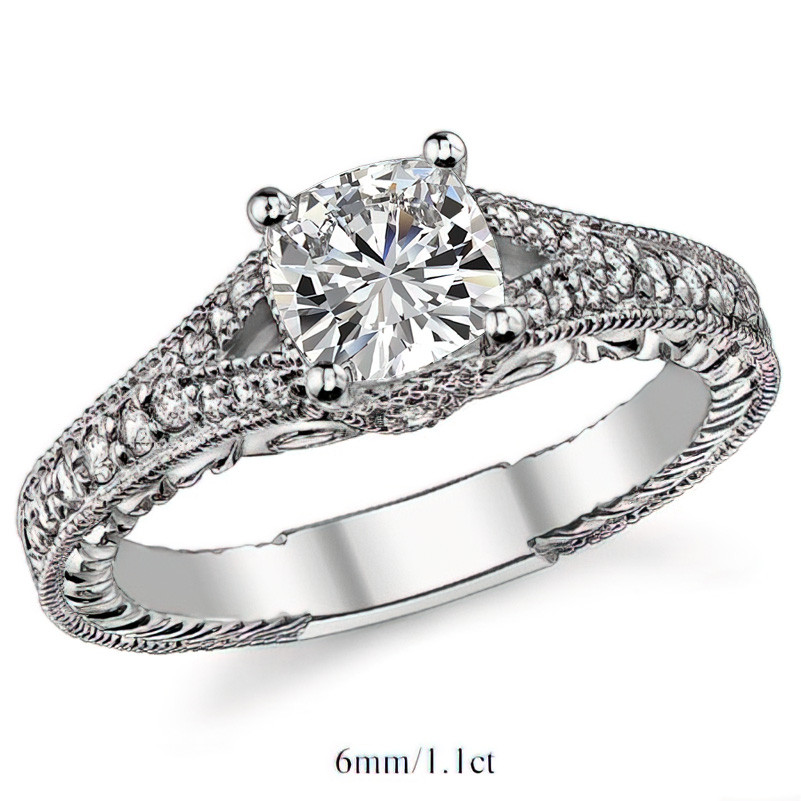 #eng484-cu Antique Split Shank Cushion Lab Grown Diamond Engagement Ring