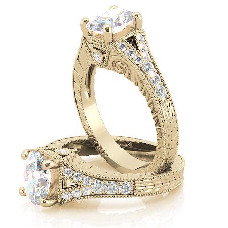 Featuring Milgrain, Antique, Etched, Split Shank, Side Stones and Surprise Diamond from our Engagement Rings collection. Model #eng484-ov is available in 6 brilliant center stone options, 2 fine sidestone options, and your choice of 6 eco-friendly precious metals.
