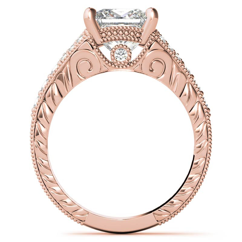 Featuring Side Stones, Antique, Etched, Split Shank, Milgrain and Surprise Diamond from our Engagement Rings collection. Model #eng484-pr is available in 6 brilliant center stone options, 2 fine sidestone options, and your choice of 5 eco-friendly precious metals.