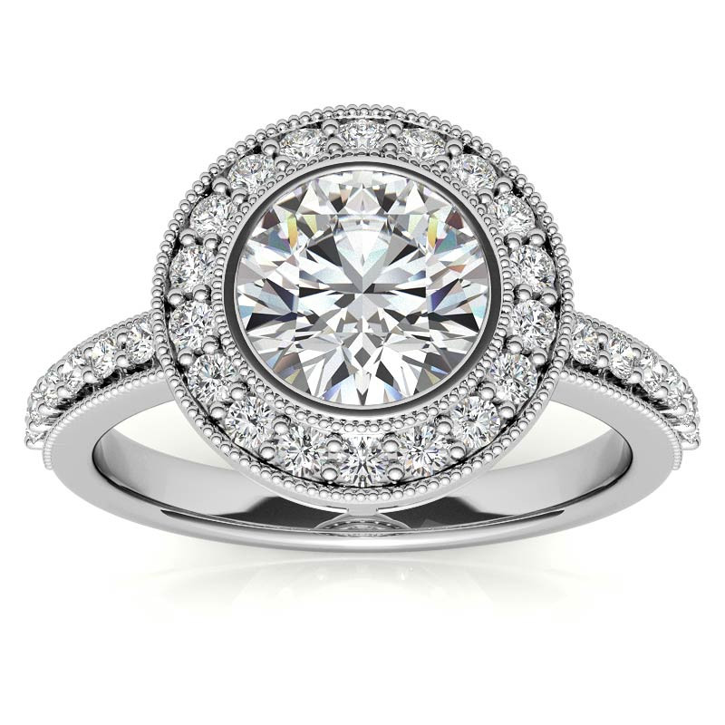 #eng498 Round Halo Bezel Antique Lab Grown Diamond Engagement Ring