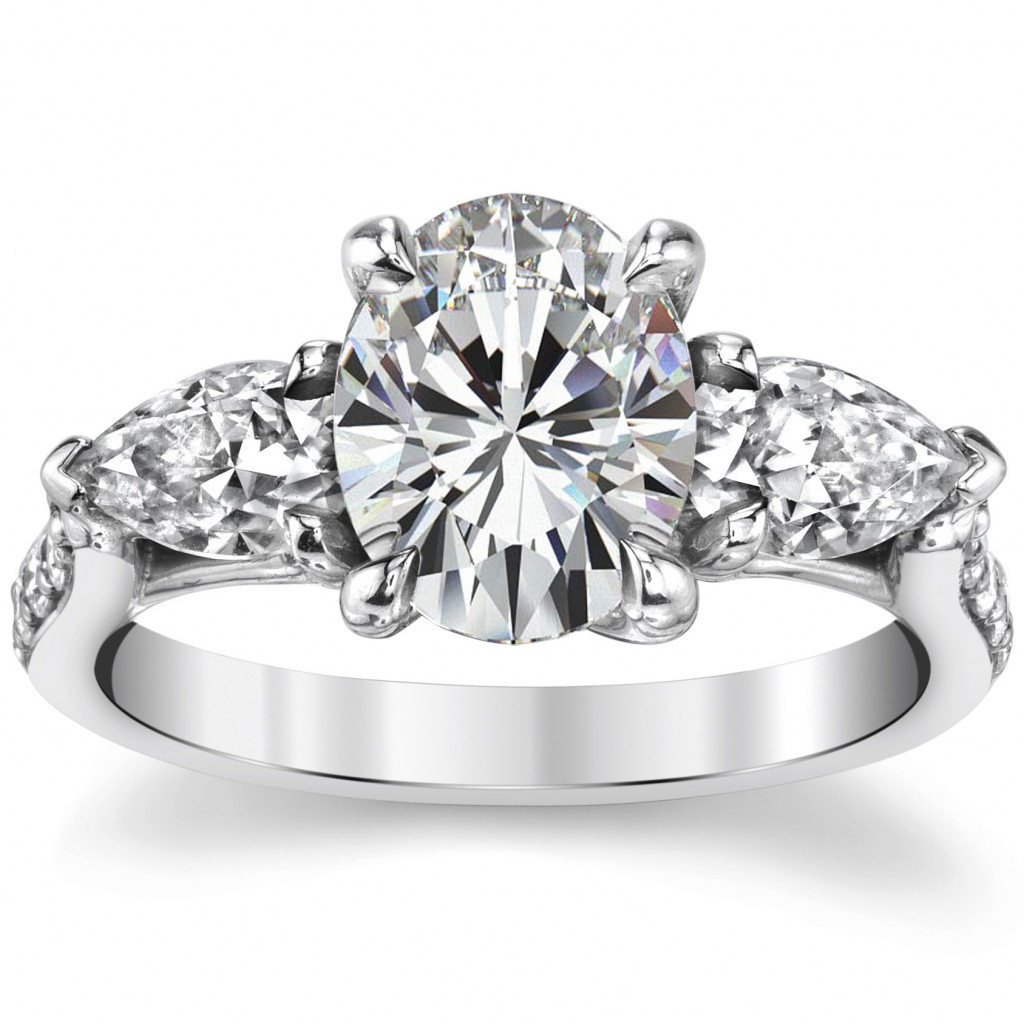 #eng519 Oval and Pear 3-Stone Trellis Lab Grown Diamond Engagement Ring