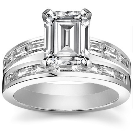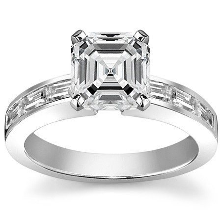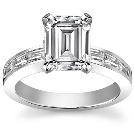 This lab grown diamond engagement ring setting features a channel set design with 0.60ct of baguette lab grown diamond side stones, set in 14k gold, 18k gold or platinum. (6x 4x2mm)