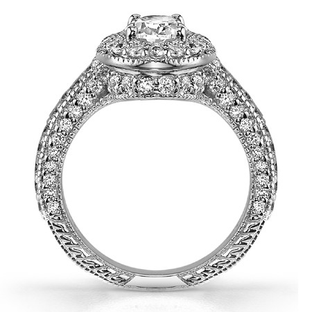 Featuring Milgrain, Halo, Antique, Side Stones and Wide Band from our Engagement Rings collection. Model #eng575 is available in 6 brilliant center stone options, 2 fine sidestone options, and your choice of 6 eco-friendly precious metals.