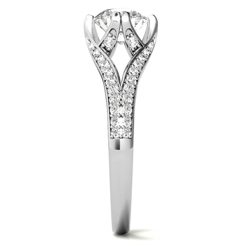 Featuring Side Stones, Unique, Cathedral and Split Shank from our Engagement Rings collection. Model #eng654 is available in 6 brilliant center stone options, 2 fine sidestone options, and your choice of 6 eco-friendly precious metals.