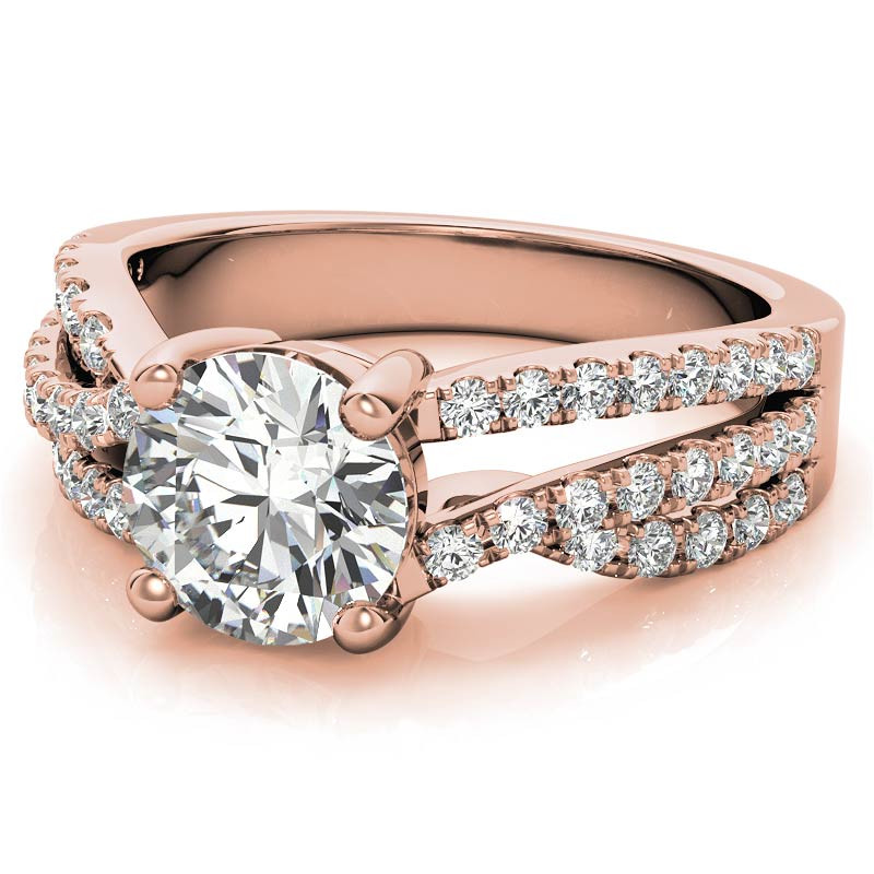 This beautiful lab grown diamond ring features a multi-band design, round brilliant lab grown diamond center stone with round brilliant lab grown diamond side stones, set in 14k gold, 18k gold or platinum.