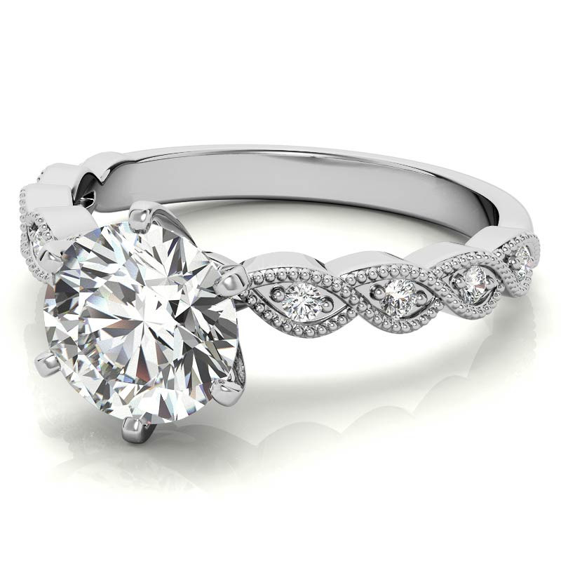 Featuring Milgrain, Infinity, Side Stones, Petite, Unique and Scalloped Band from our Engagement Rings collection. Model #eng853 is available in 61 brilliant center stone options, 2 fine sidestone options, and your choice of 6 eco-friendly precious metals.