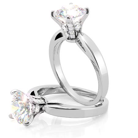 #eng875 Round Brilliant Lab Grown Diamond Engagement Ring With Pave Style Basket
