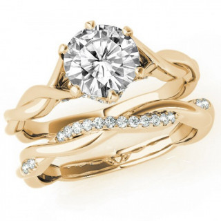This beautiful lab grown diamond engagement ring features a twisted band design with 6 prongs and diamond accents on the side of the ring. It comes with a round brilliant lab grown diamond center stone, 0.11ct of diamond side stones, and is available in 14k gold, 18k gold or platinum.