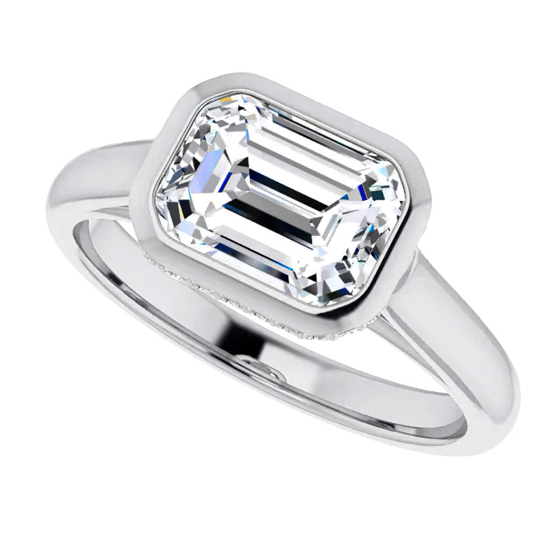 #enr034-em Emerald cut Lab Grown Diamond Bezel Engagement Ring