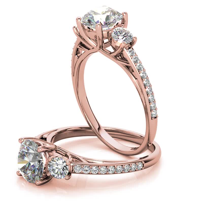 #enr037 Round Three-Stone Lab Grown Diamond Engagement Ring