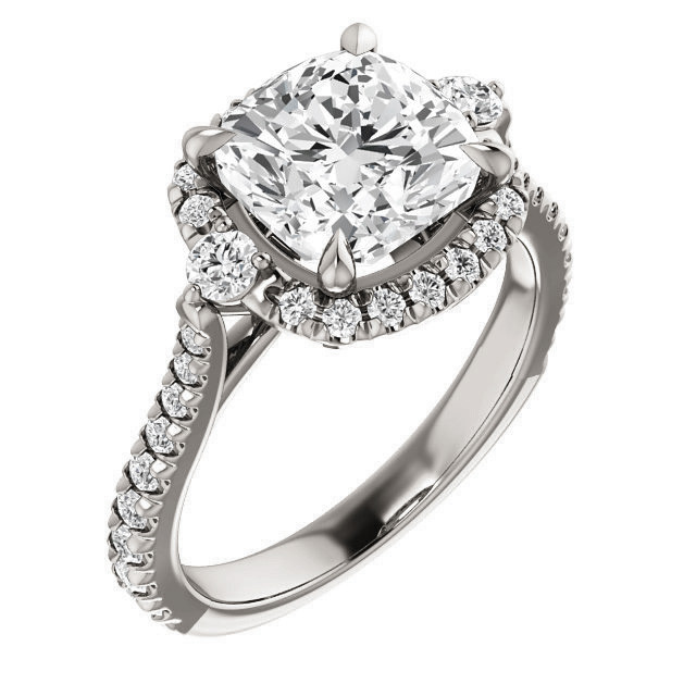 #enr051-cu Cushion Lab Grown Diamond Cathedral Halo Engagement Ring with Claw Prongs