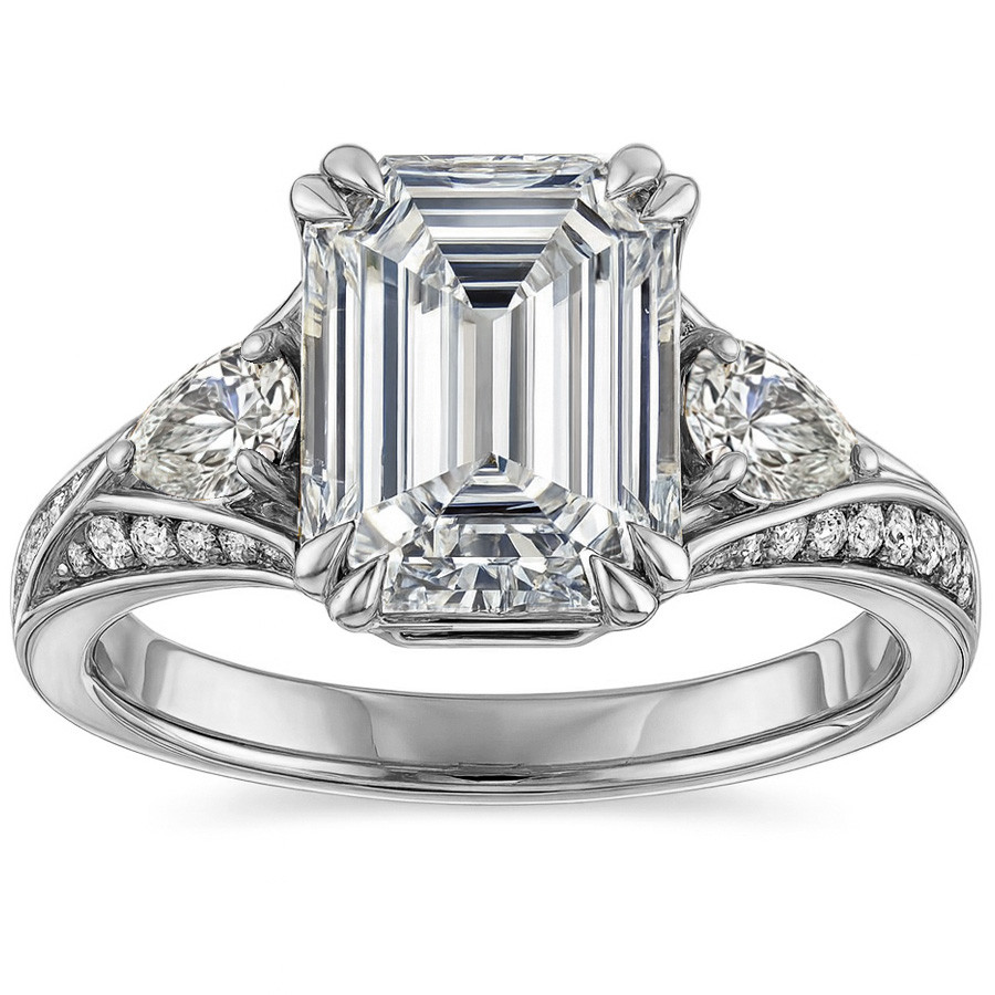 Featuring Side Stones and Three Stone from our Engagement Rings collection. Model #enr105-em is available in 12 brilliant center stone options, 2 fine sidestone options, and your choice of 6 eco-friendly precious metals.