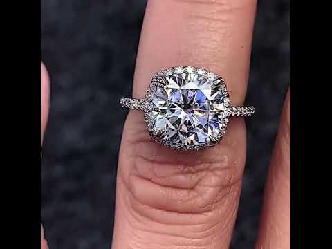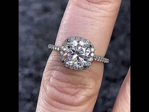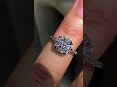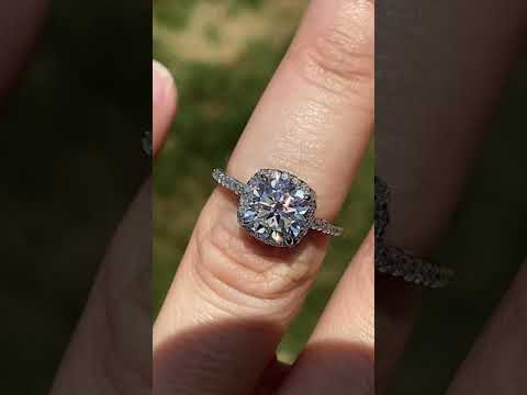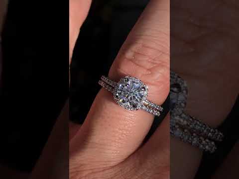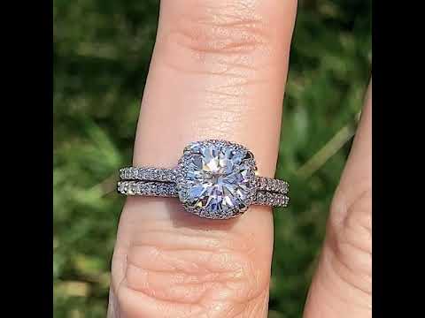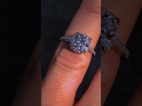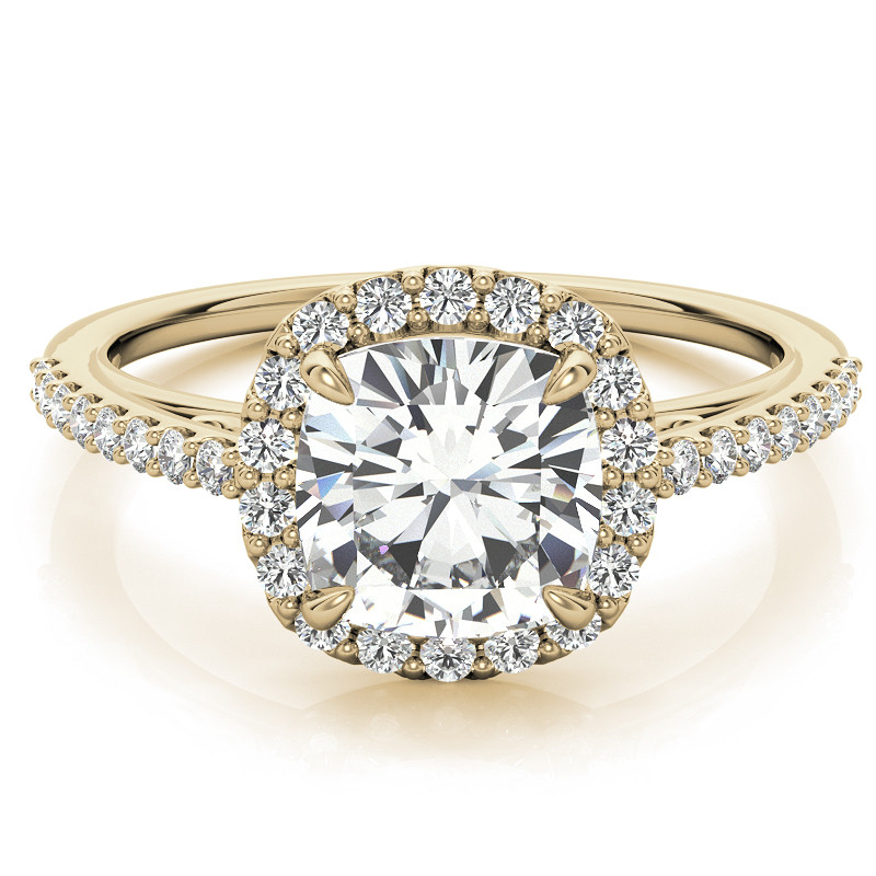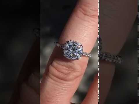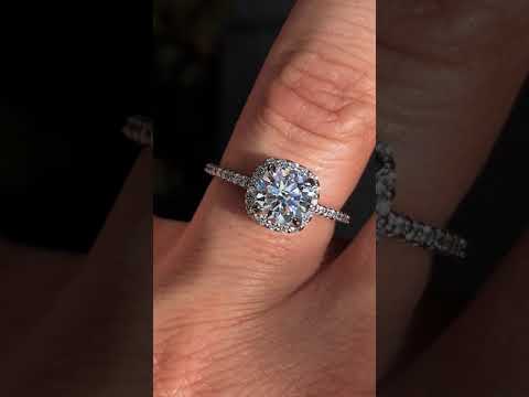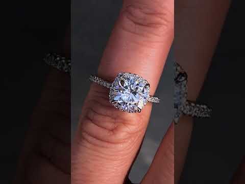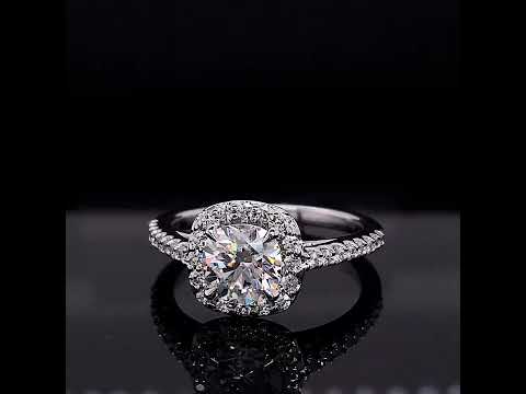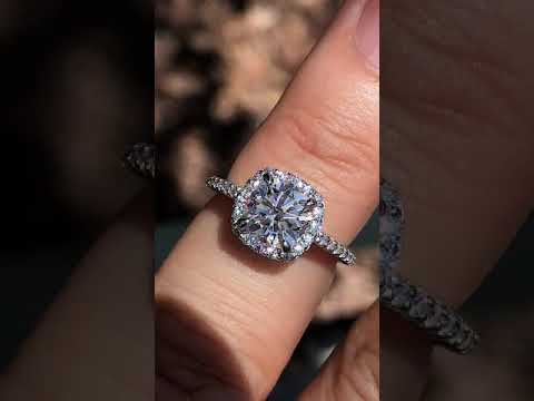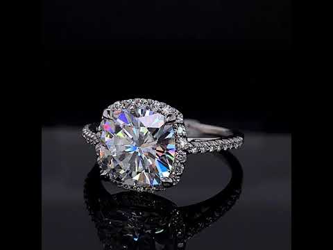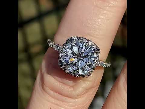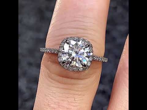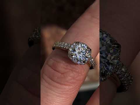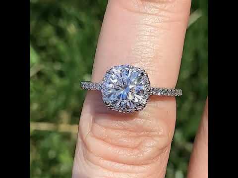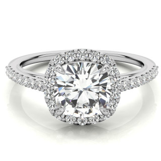 #enr126-cu Cushion Petite Halo Lab Grown Diamond Engagement Ring with Scroll Accent