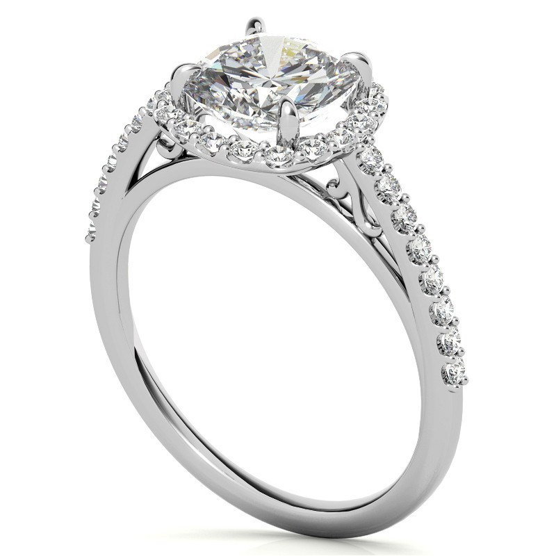 Featuring Side Stones, Halo, Petite and Scroll from our Engagement Rings collection. Model #enr126-cu is available in 3 brilliant center stone options, 2 fine sidestone options, and your choice of 6 eco-friendly precious metals.