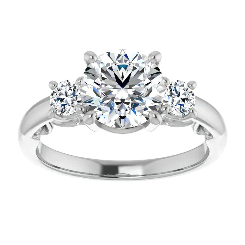 #enr128 Round Three-Stone Engagement Ring with Scroll Accent