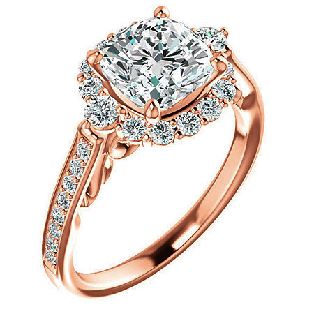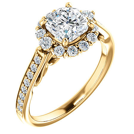 #enr129-cu Cushion Scroll Halo Engagement Ring with Surprise Diamonds