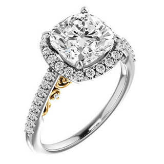 #enr130-cu Cushion Ornate Halo Engagement Ring with Scroll Accent