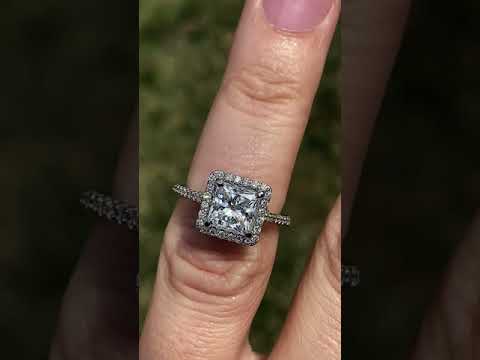 #enr130-pr Princess Halo Engagement Ring with Scroll Accent