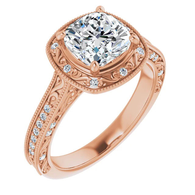 Featuring Milgrain, Scroll, Antique, Etched, Halo, Cathedral and Side Stones from our Engagement Rings collection. Model #enr142-cu is available in 3 brilliant center stone options, 6 eco-friendly precious metals.