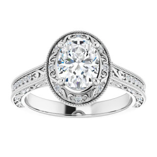 Featuring Milgrain, Halo, Scroll, Antique, Etched and Side Stones from our Engagement Rings collection. Model #enr142-ov is available in 6 brilliant center stone options, 5 eco-friendly precious metals.