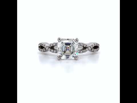 This breathtaking ring features a vintage scroll design with intricate milgrain accents that add a touch of timeless elegance to its overall aesthetic.