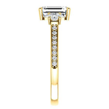 Featuring Side Stones, Three Stone, Cathedral and Scroll from our Engagement Rings collection. Model #enr163-em is available in 14 brilliant center stone options, 2 fine sidestone options, and your choice of 6 eco-friendly precious metals.