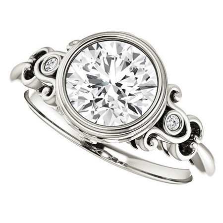 #enr168 Round Lab Grown Diamond Bezel Scroll Engagement Ring