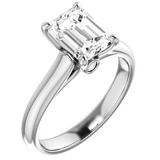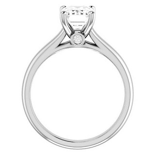 This beautiful engagement ring features a classic cathedral design, your choice of an emerald or radiant cut colorless lab grown diamond center stone, two bezel set "surprise" colorless diamonds 0.04tcw, and is set in your choice of 14k gold, 18k gold or platinum. Add an optional matching band to make it a wedding set.