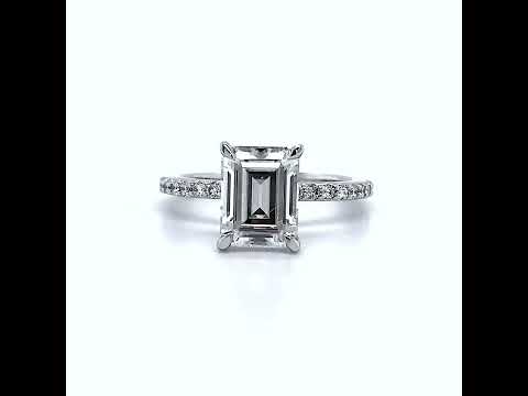 #enr180-em Emerald / Radiant cut Lab Grown Diamond Engagement Ring with collar