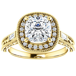 #enr185-cu Cushion Lab Grown Diamond Antique Halo Engagement Ring