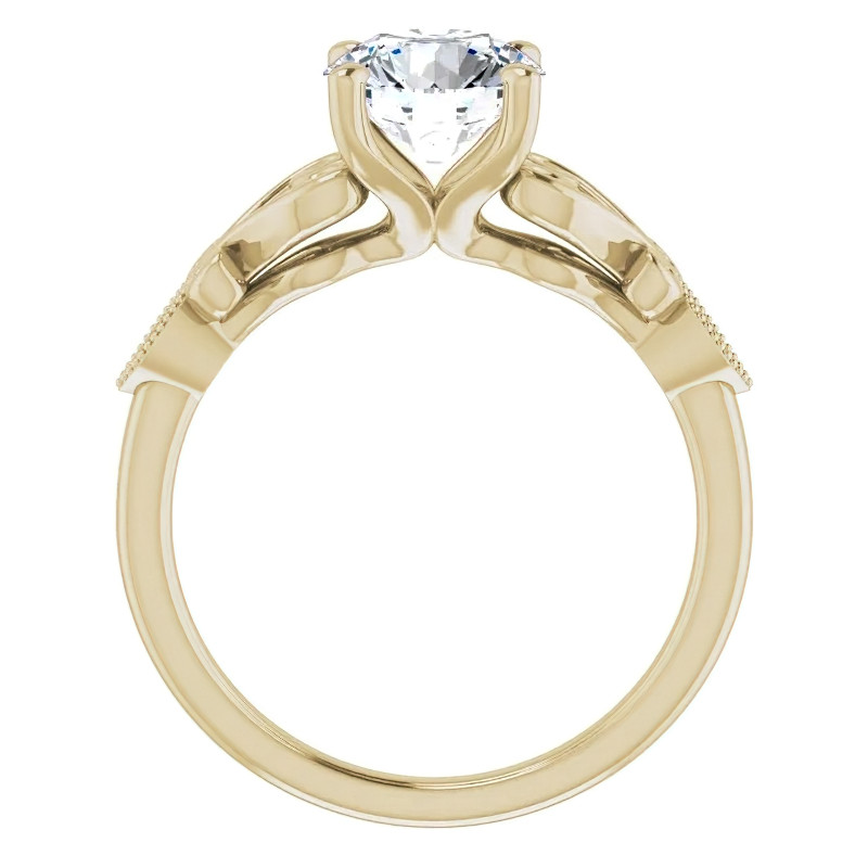 This beautiful lab grown diamond engagement ring features a scroll design with milgrain accents, a round brilliant lab grown diamond center stone, 0.02ct of diamond side stones, and is set in your choice of 14k gold, 18k gold or platinum.