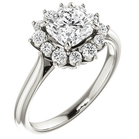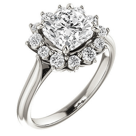 #enr200-cu Cushion Lab Grown Diamond Snowflake Halo Ring