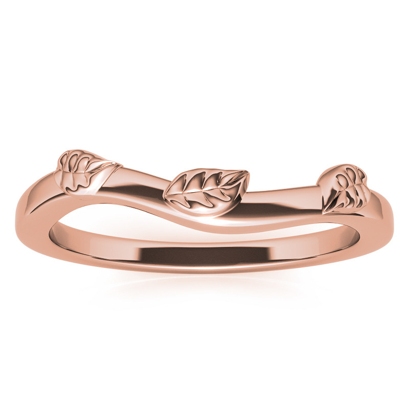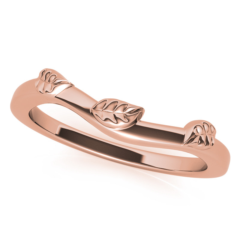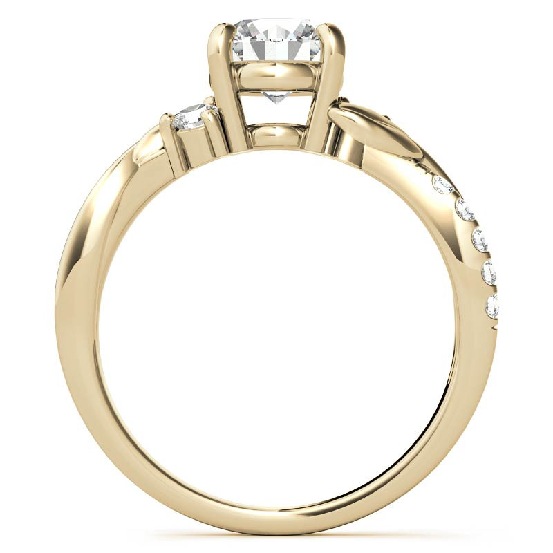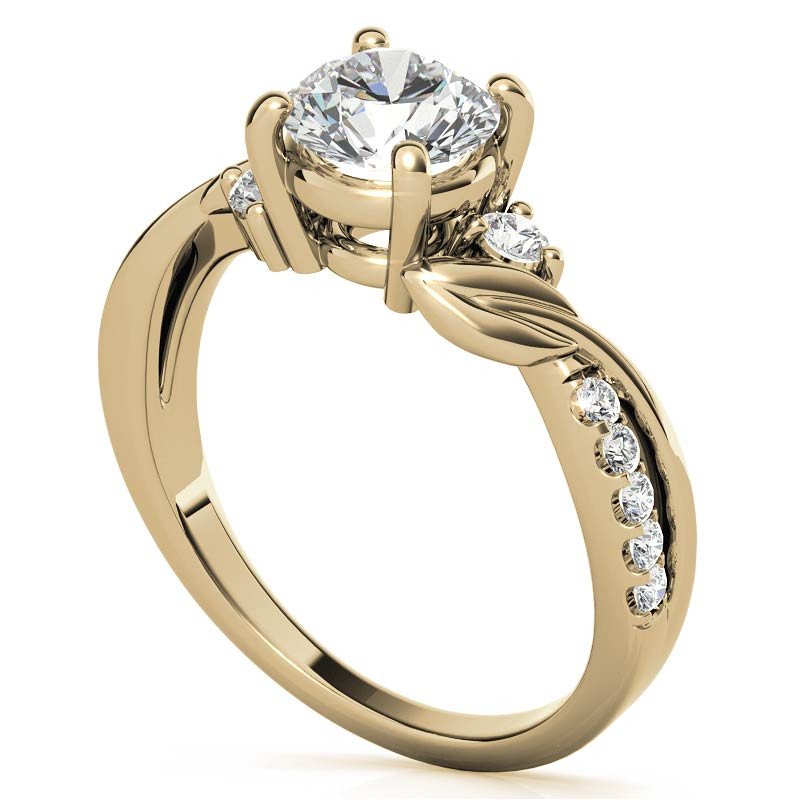 This lab grown diamond engagement ring features a beautiful nature inspired design with two leaves wrapping around the sides of the center stone, a split shank, a round brilliant cut lab grown diamond center stone, and your choice of round brilliant cut lab grown diamond side stones. It is available in 14k gold, 18k gold or platinum.