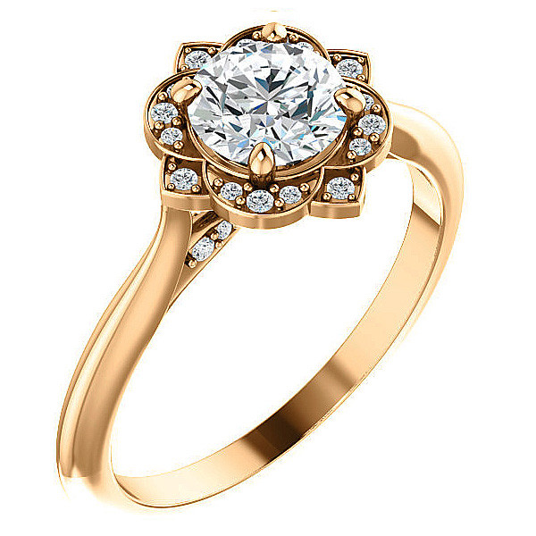 #enr212 Round Lab Grown Diamond Floral Halo Engagement Ring